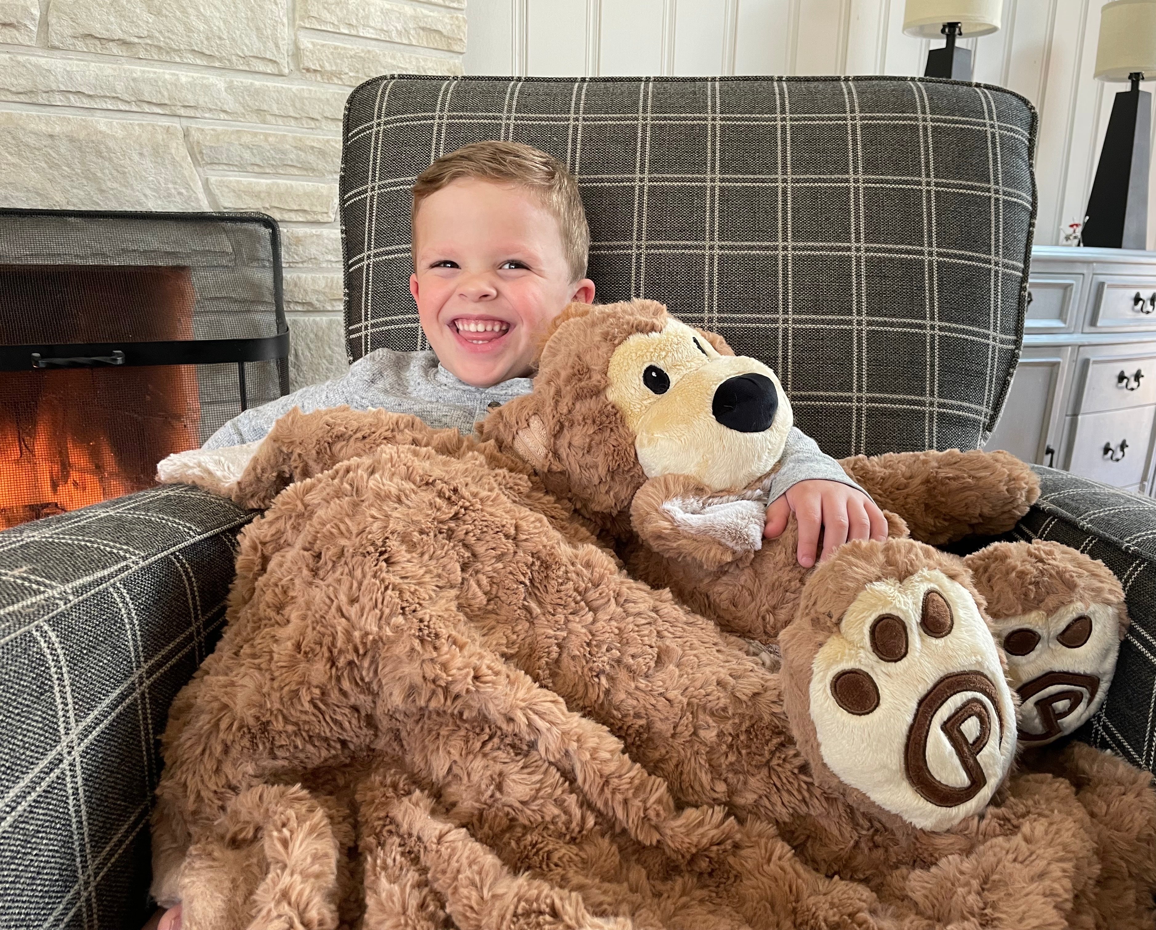 Pawley's vibrant colors and soft, plush material make it an irresistible friend for kids and a versatile accessory for playtime or naptime. Bring home the joy of Pawley the Teddy Bear Blankie Bestie and let the cuddly adventures begin!