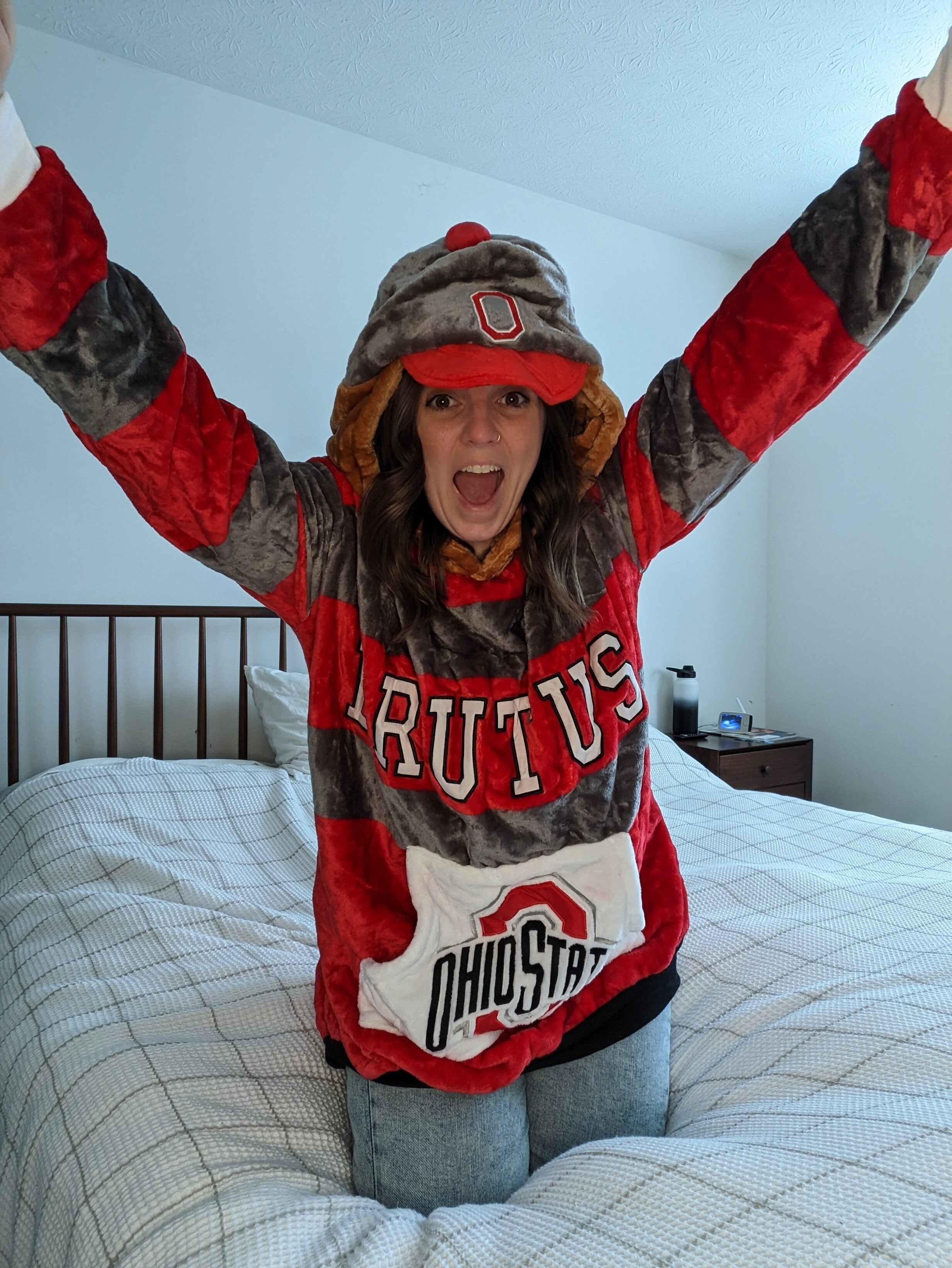 The envy of every fan, this Snugible effortlessly converts into a plush pillow for those post-victory naps. With its witty design and one-size-fits-most feature, it's perfect for you, your roomie, and even your Buckeye-loving grandma. Don't just wear your team's colors - embrace them with the OSU Snugible. Go Buckeyes!
