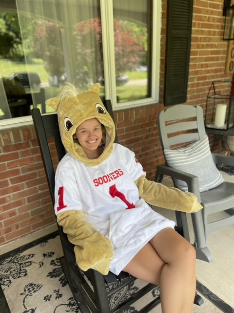 Get cozy and show off your school spirit with the University of Oklahoma Sooner Snugible! This 2-in-1 plushie and blanket hoodie is the perfect way to stay warm while supporting your team. Featuring Sooner, one of the beloved horses that pulls the Sooner Schooner, this plushie is a must-have for any true Sooners fan.