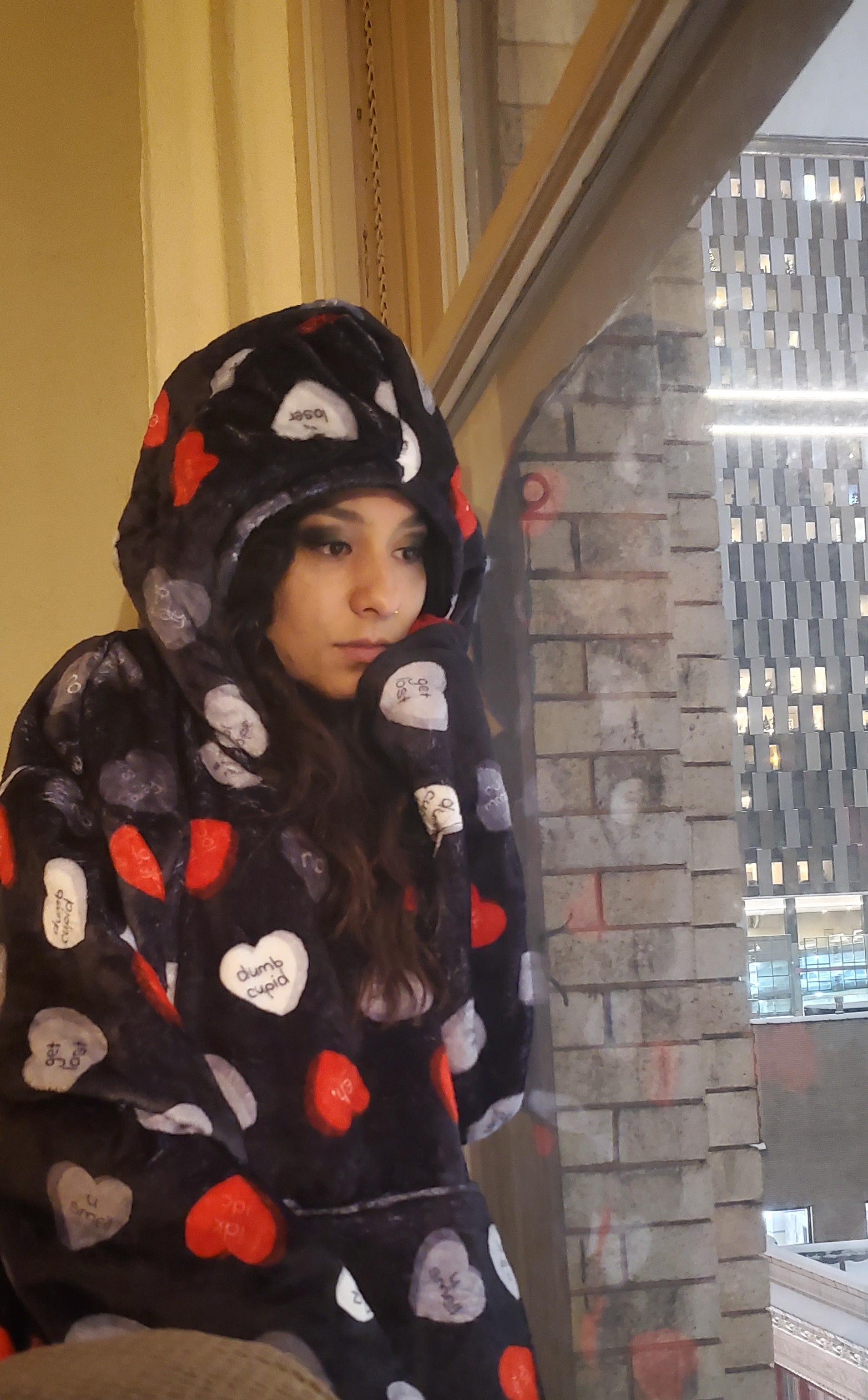 Introducing the loathing Love Sux Snugible by Plushible! This transforming Blanket Hoodie & Plushie combo redefines cuddle time whether you like to or not. Express your vibe with its edgy yet adorable design, featuring iconic bites of anti-love quotes that probably won't bring a smile to your face. But it will for others!