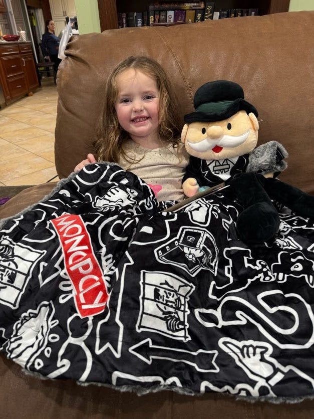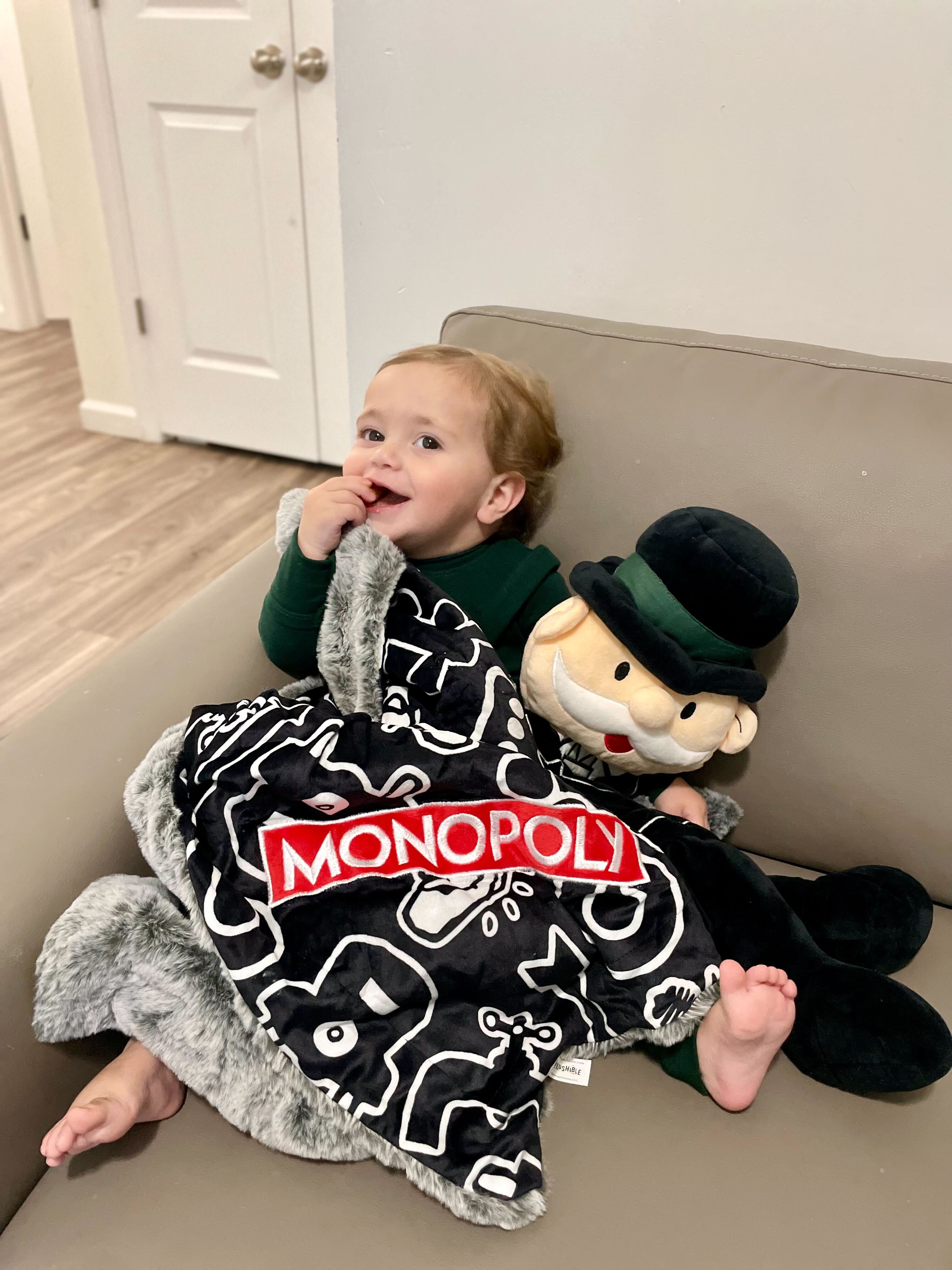 Whether your little one is pretending to buy properties, pass Go, or just unwind, the Monopoly Blankie Bestie adds a delightful touch of adventure to their day. Bring home the fun and snuggle up in classic Monopoly style!
