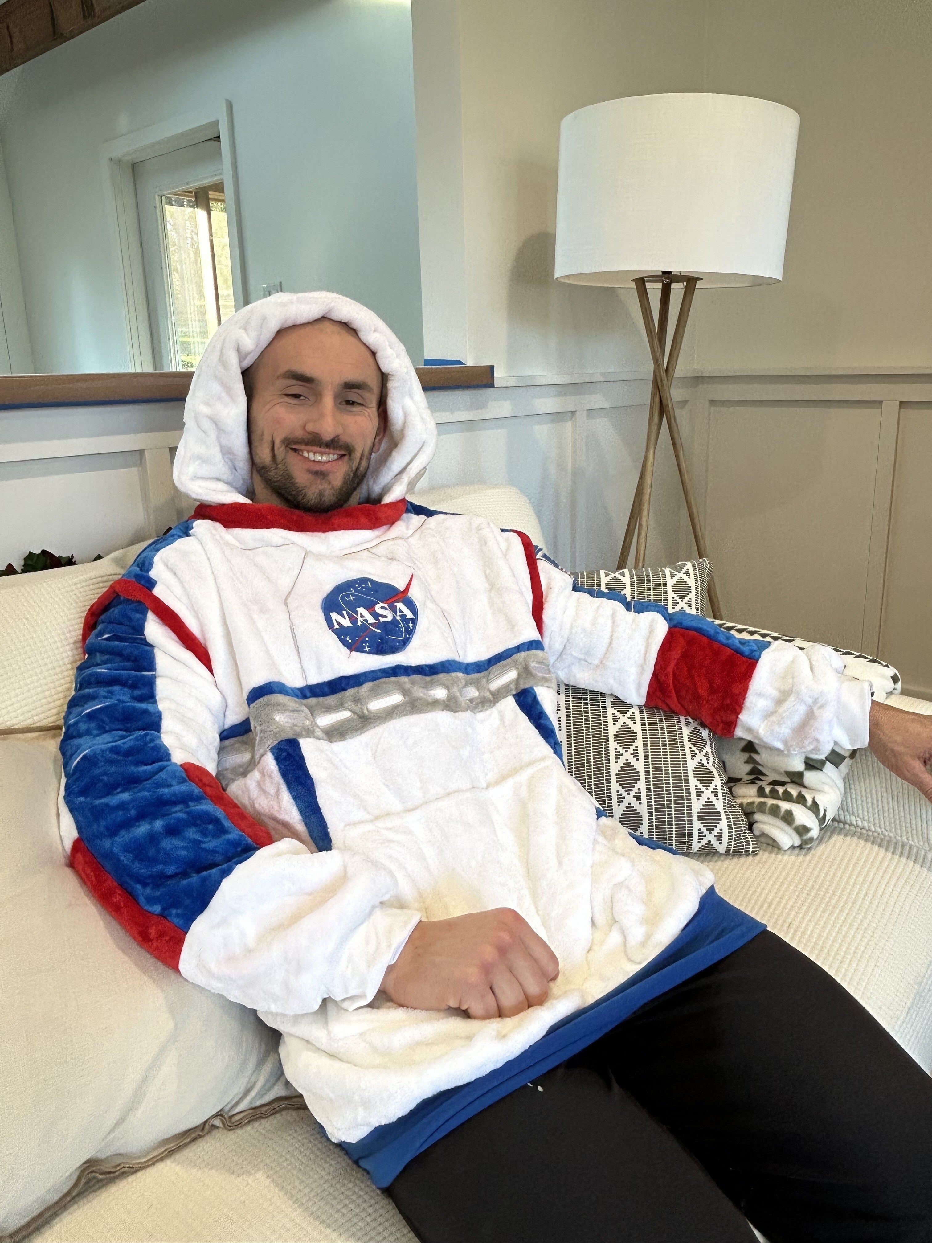 Step into the out-of-this-world comfort of the NASA Astronaut Snugible by Plushible! Crafted from premium materials, it's a cozy haven of warmth, softness, and durability. Its oversized design wraps you in a snug cocoon, perfect for lounging, stargazing, or hanging out with friends.