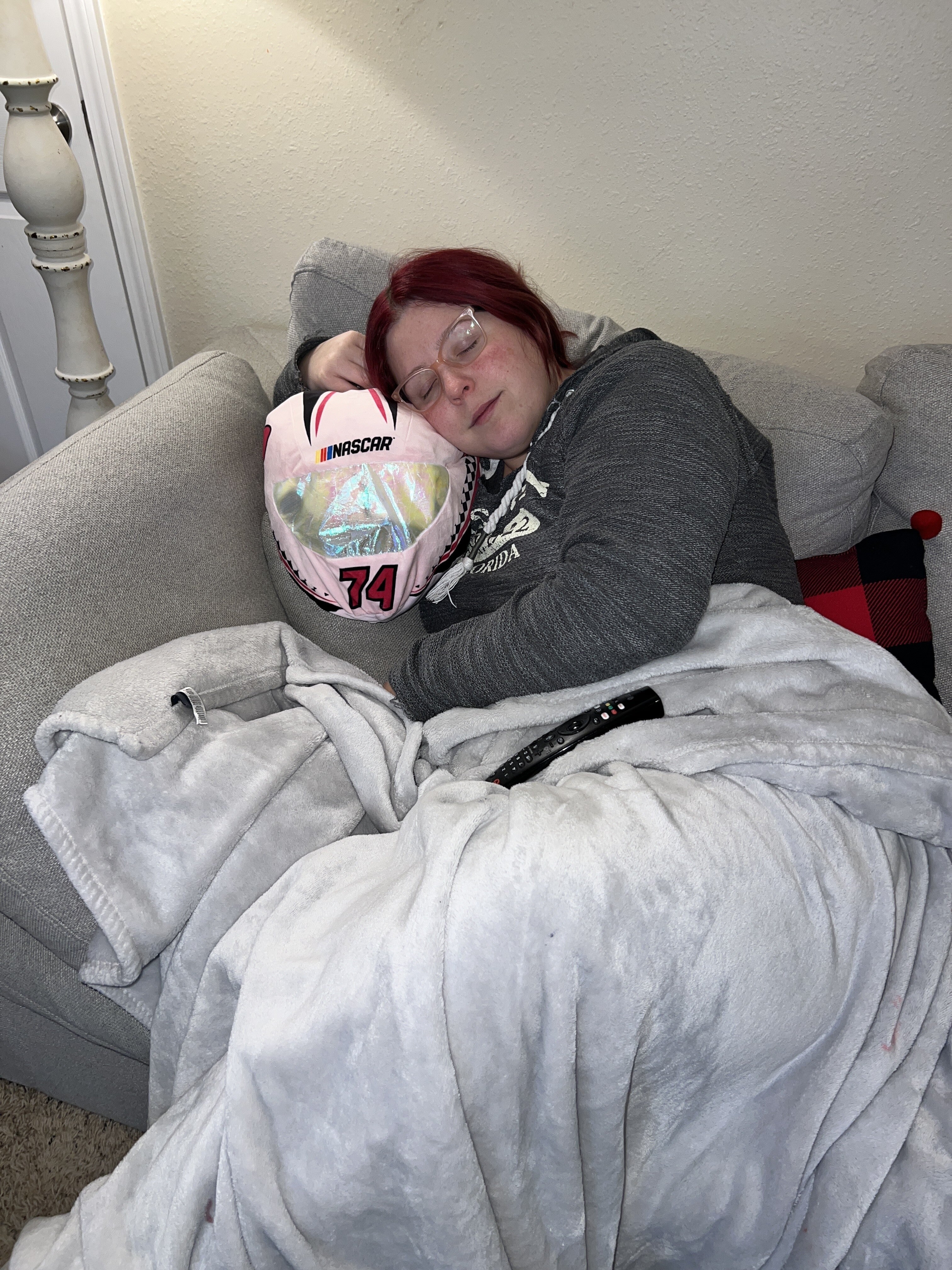 Put the pedal to the metal in comfort with our NASCAR Racing Suit Snugible. This isn't just a plushie, it's a race day revolution! The Snugible transforms from a racing helmet to a snug racing suit blanket hoodie in a flash. Embrace the adrenaline in plush, pink and black comfort, perfect for cuddling or flaunting your NASCAR pride.