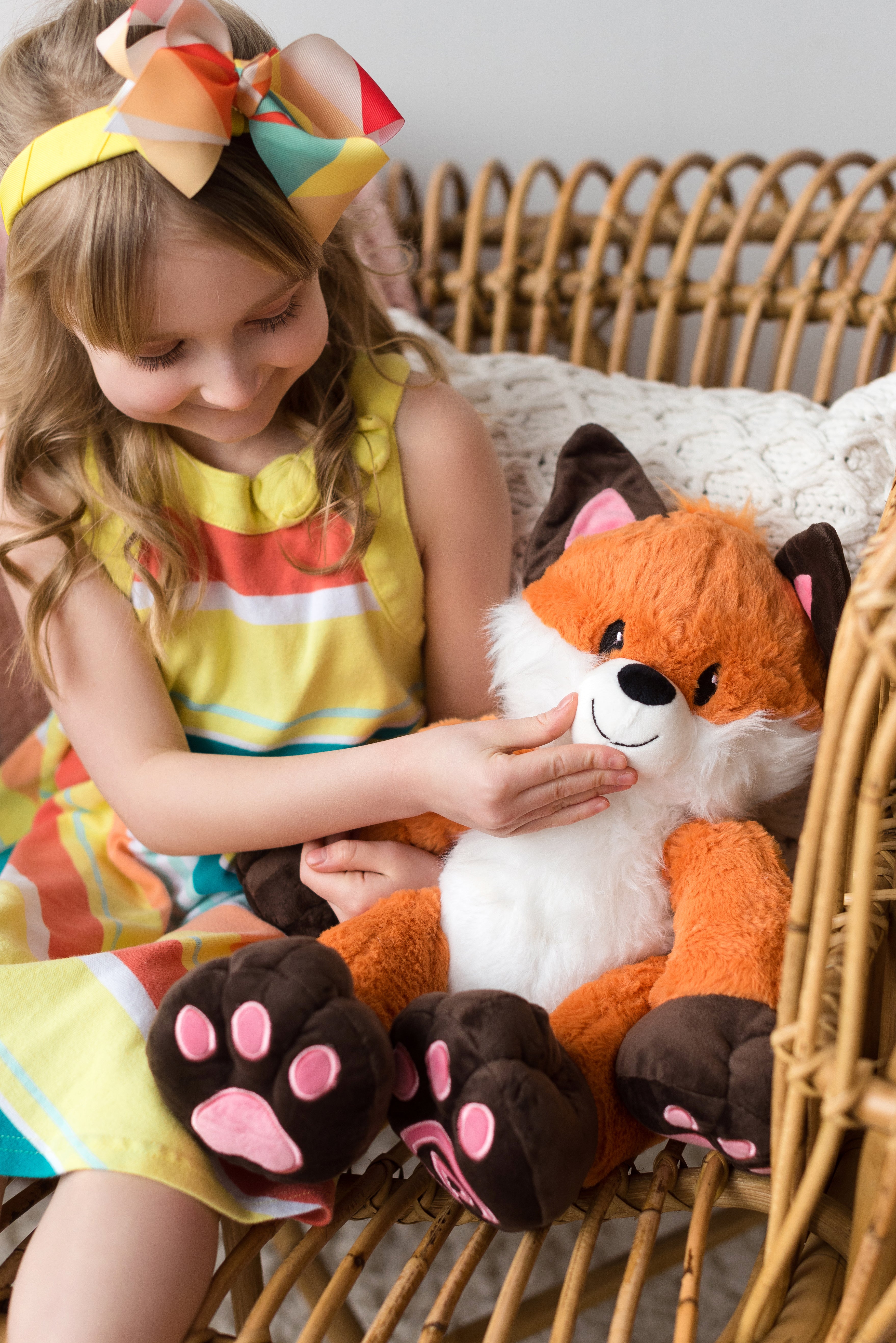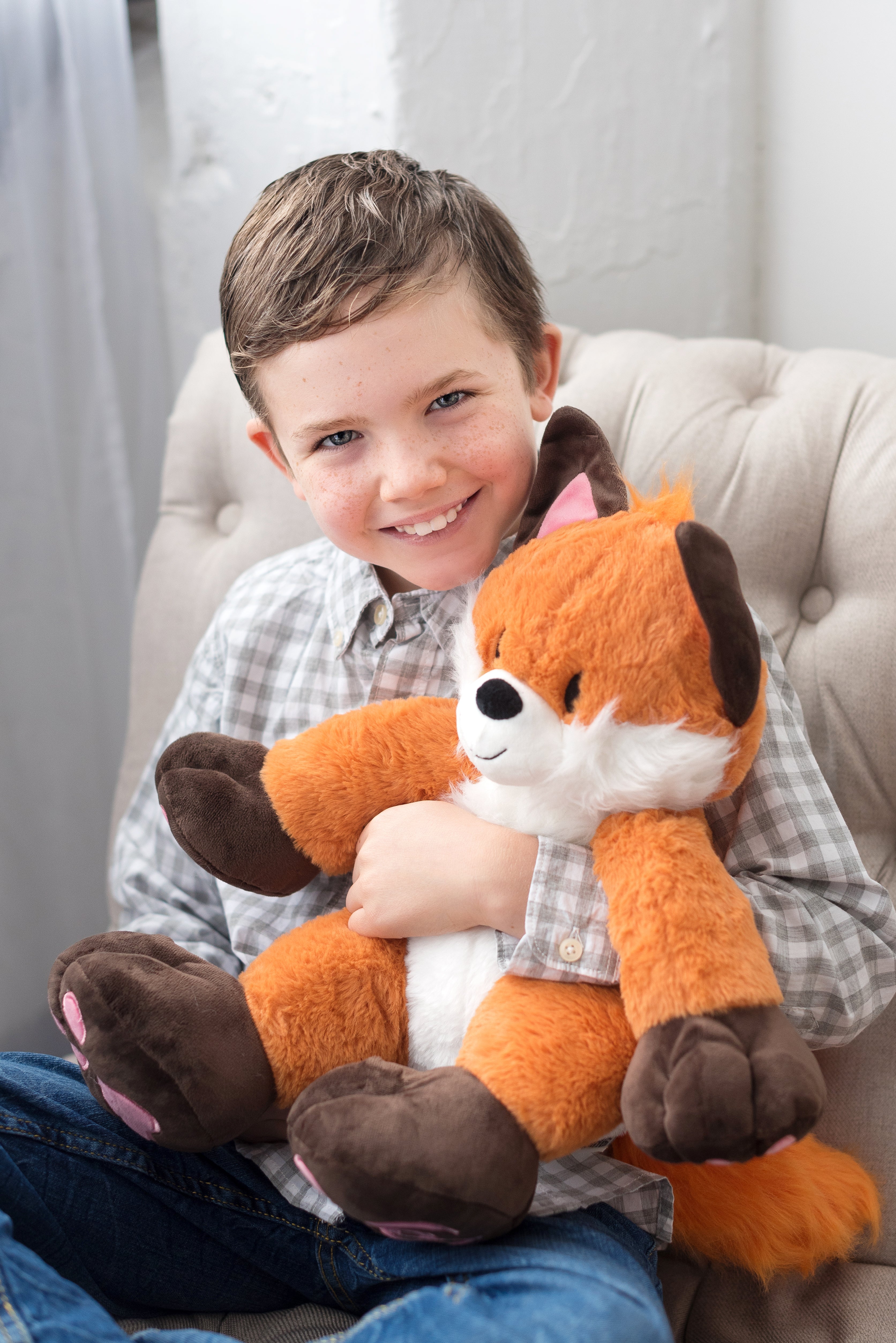 Meet Finnigan the Fox, your new favorite cuddle companion! With his vibrant orange-brown fur and charming embroidered details, Finnigan is ready for endless snuggles. This adorable plush fox stands at a huggable 18 inches tall, making him perfect for both playtime and cozy moments. As a proud member of the Plushible family, Finnigan sports the signature 'P' on his paw. Crafted from ultra-soft, safe plush material, he's suitable for little ones aged three months and up. Bring home Finnigan and experience the warmth and comfort of a perfect plush friend!